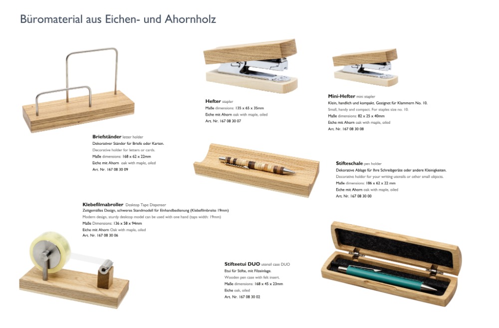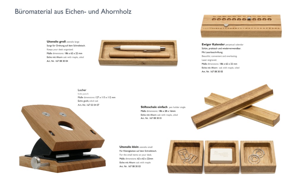 Handwerkliche Qualität, ein ansprechendes Design und eine sorgfältige Holzauswahl nach ökologischen Kriterien - dafür stehen seit Anfang der achtziger Jahre die Steinhöringer Werkstätten und die dort hergestellten hochwertigen und exklusiven Büroaccessoires.